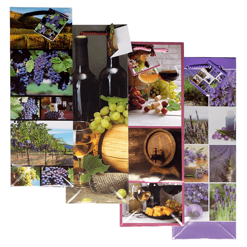 Ajándéktasak 26x35x9 cm (szélesség-magasság-mélység) italos különböző mintákkal.