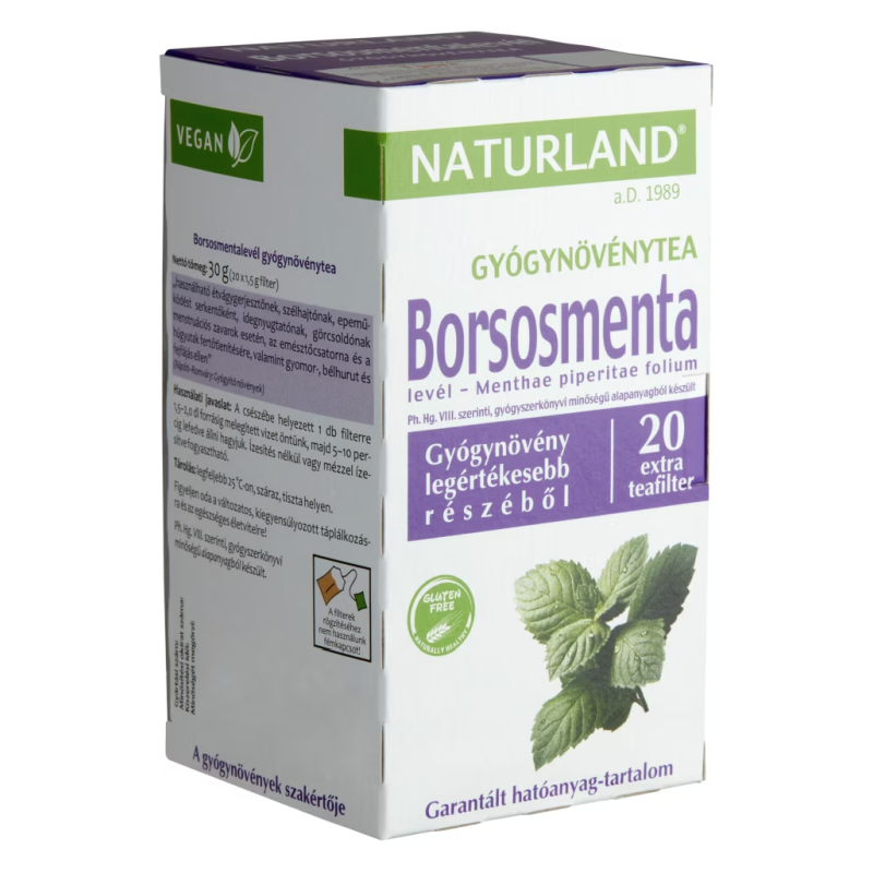 Borsosmentalevél gyógynövénytea. Menthae piperitae folium. Ph. Hg. VIII. szerinti, gyógyszerkönyvi minőségű alapanyagból készült. Jellegzetes zamatát, kesernyésen édes ízét gazdag illóolaj-tartalma adja. Értékes anyagokban gazdag teáját a keleti kultúrákban rendszeresen fogyasztják. Élvezze a zöld tea jellegzetes ízét a borsosmenta frissítő, mentolos zamatával!