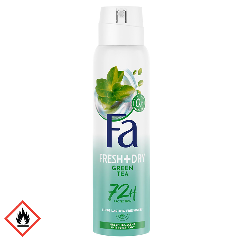 Fa Fresh & Dry izzadásgátló deospray a Zöld Tea illatával. Új illatkapszula technológiával. Hosszantartó izzadtság és testszag elleni védelem.