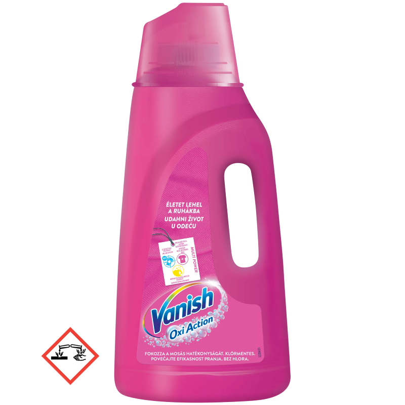 Kíméletes a ruhájával, kíméletlen a foltokkal! Lenyűgöző folteltávolítás! Már 1 mosás alatt eltávolítja a foltokat és már 30°C-on is hat. A Vanish folteltávolító folyadék gyorsan ható, erős tisztítószer a ruhák és egyéb szövetek tisztaságának és frissességének biztosításához. Az Oxi Action formula hatékonyan eltávolítja a mosószerek által hátrahagyott foltokat is. A kézhez álló, egyszerűen használható palacknak köszönhetően a Vanish kényelmesen használható a szokásos mosóporral vagy géllel, hiszen selyem, gyapjú, fehér vagy színes textíliákon egyaránt hatékony.