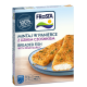 Alaszkai tőkehalfilé medvehagymával, darabokból formázva, ropogós panírban, elősütve.