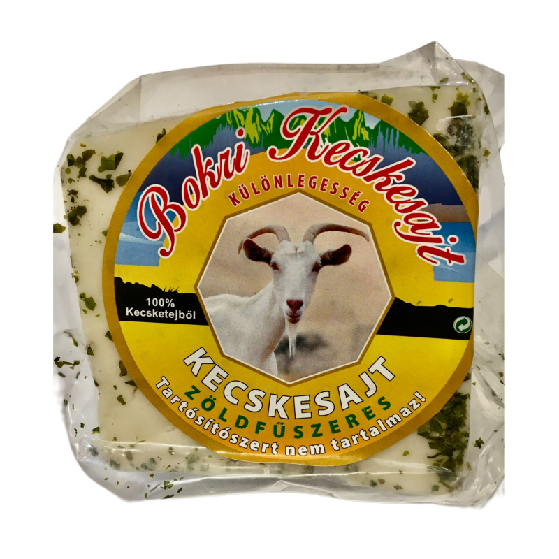 Bokri félkemény, zöldfűszeres kecskesajt különlegesség.