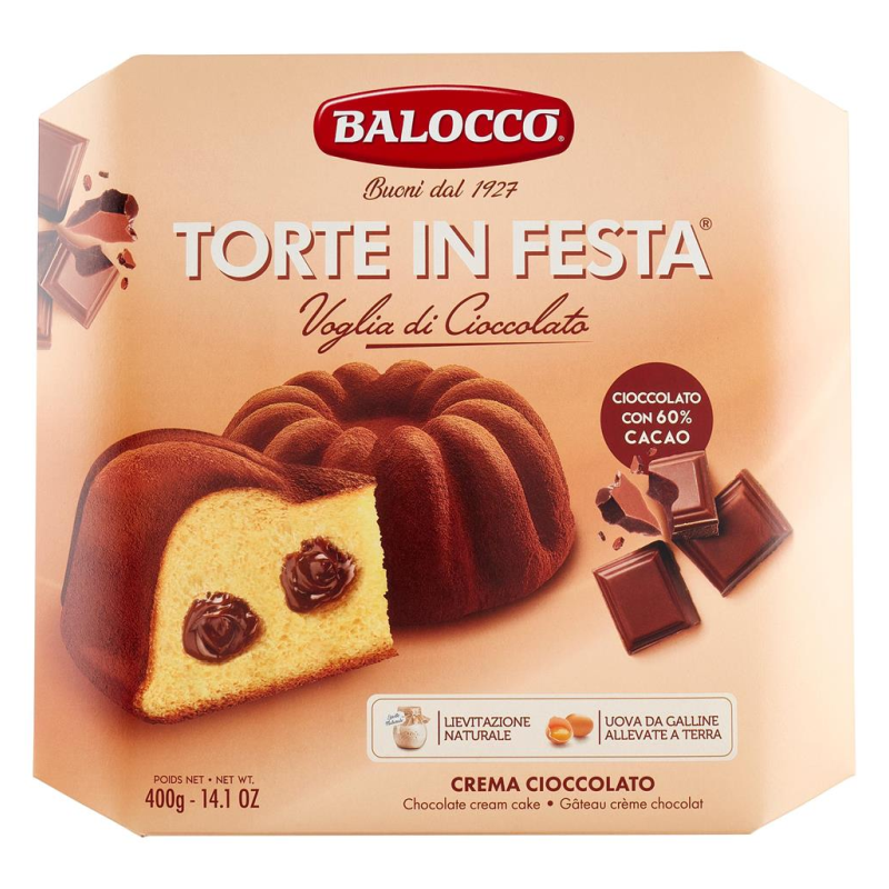 A Balocco Cioccolato torta ízletes, csokoládés krémmel töltött torta, szükséges tasakos, cukrozott, zsírszegény kakaópor készítménnyel (2,5%) a díszítéshez.