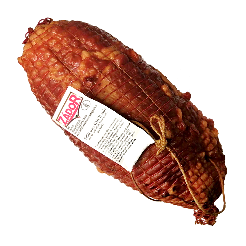 Füstölt, nyers, kötözött sonka bőr és csont nélkül, forrón füstölt, gyorspácolt.