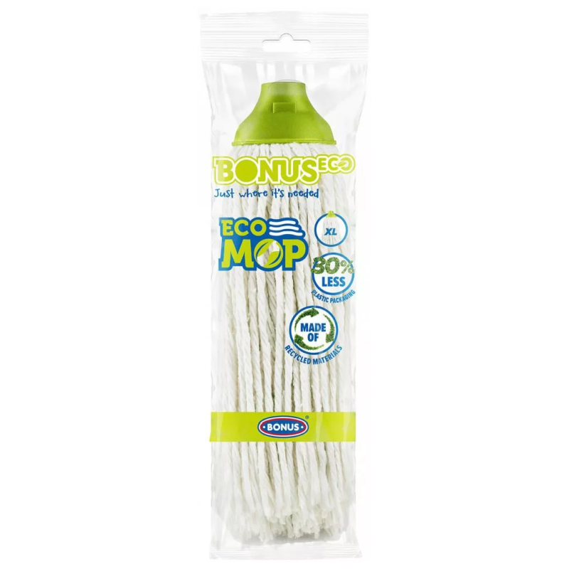 ECO MOP felmosófej - 100%-ban újrahasznosított pamut (60%) és szintetikus (40%) szálakból készült felmosófej. A legtöbb felmosó nyélre illeszkedik.