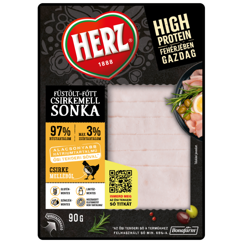 gluténmenteslaktózmentesHerz sonka 90 g szeletelt, laktózmentes, gluténmentes