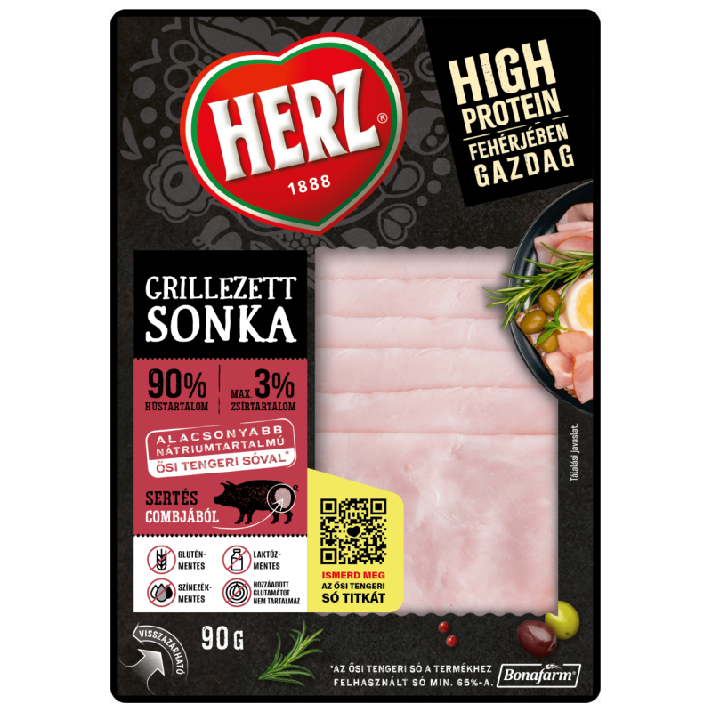 A kíméletes gyártási eljárás biztosítja a szaftosságot, ráadásul az aranybarnára sült kéreg és a hajszálvékony szeletelés a Herz Grillezett sonkát minden szendvics és saláta ékévé teszi.