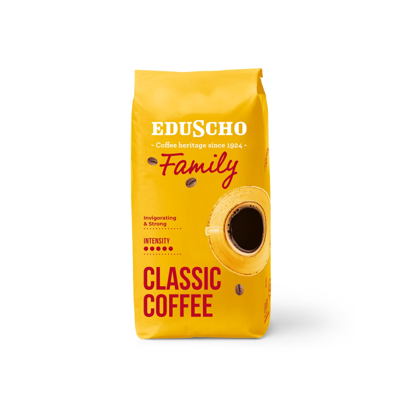 A Tchibo Eduscho Family ugyanaz a telt aromájú kávé, melyet oly sokan kedvelnek. Gazdag és élénkítő ízvilágával kétségkívül elnyeri a kávé szerelmeseinek tetszését. Tökéletes választás a kávé mindennapi élvezetéhez, akár a meghitt családi vagy baráti összejövetelekhez. A Tchibo Eduscho kávéhoz szakértői odafigyeléssel pörkölik a gondosan kiválogatott kávészemeket, hogy minden csészében a kávé gazdag és telt aromája köszönjön vissza.