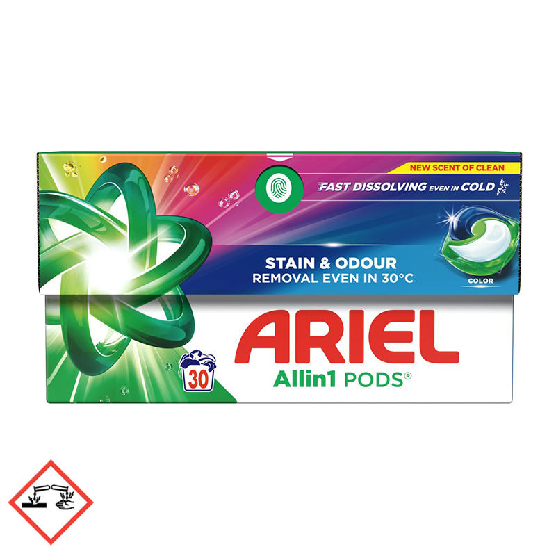 A Whirlpool, Electrolux, Candy és Beko mosógépgyártók által is ajánlott Ariel bemutatja az Ariel Allin1 PODS Color mosószerkapszulát, amely már 30°C-on is eltávolítja a makacs foltokat és a kellemetlen szagokat. Alacsonyabb hőfokú mosás esetén is kifogástalanul hatékonyak. Hideg vízben is feloldódva makulátlan végeredményt nyújtanak.