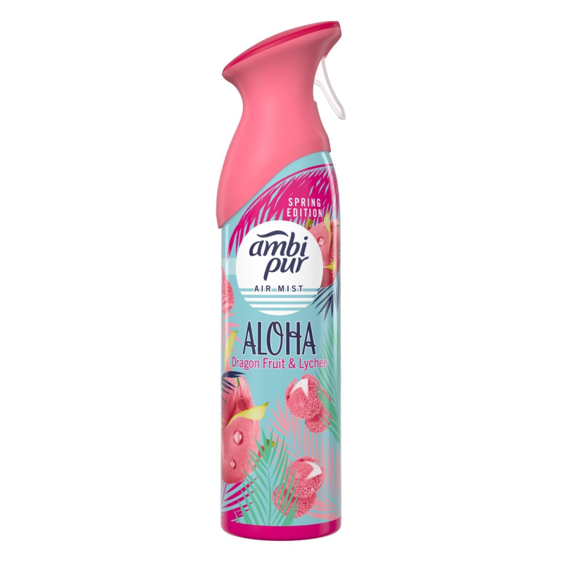 Az Ambi Pur Aloha légfrissítő spray OdourClear technológiája felveszi a küzdelmet a makacs, beivódott szagokkal szemben, és friss illatot hagy maga után.