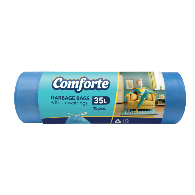 Higiénikus használati eszköz a háztartásokban. Praktikusan rollnizott, zárószalagos, 35 literes szemeteszsák. 15 db 35 l-es szemeteszsák található a csomagban.