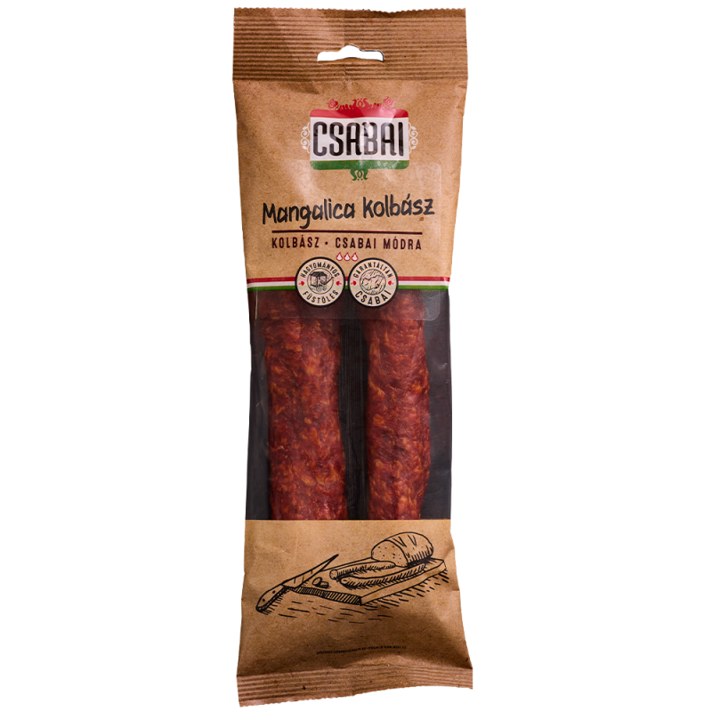 Szárításos érleléssel készült füstölt száraz kolbász, védőgázas csomagolásban.