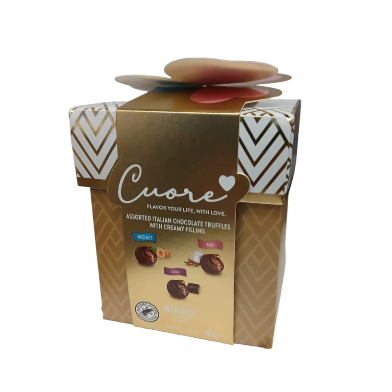 Vegyes, töltött tej- és étcsokoládé praliné.