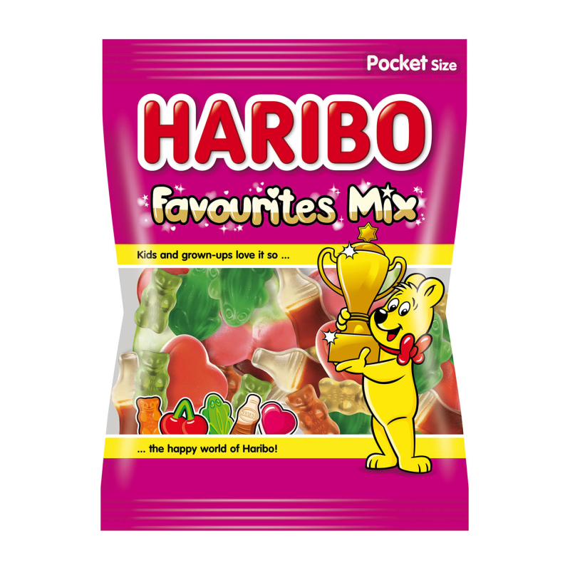 Friss gyümölcsös ízek gazdag keveréke egy praktikus tasakban. A Haribo Favourites Mix a klasszikus kedvenc ízek válogatása, amely bármikor és bárhol azonnal feltölt energiával.