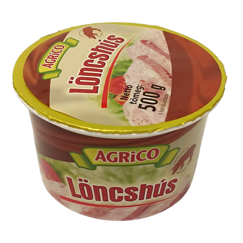 Löncshús. Hőkezelt félkonzerv, sertéshússal és csontokról mechanikusan lefejtett csirkehússal.