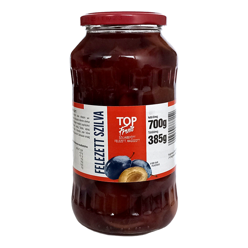 Szilvabefőtt, magozott, felezett. Hőkezelt termék.