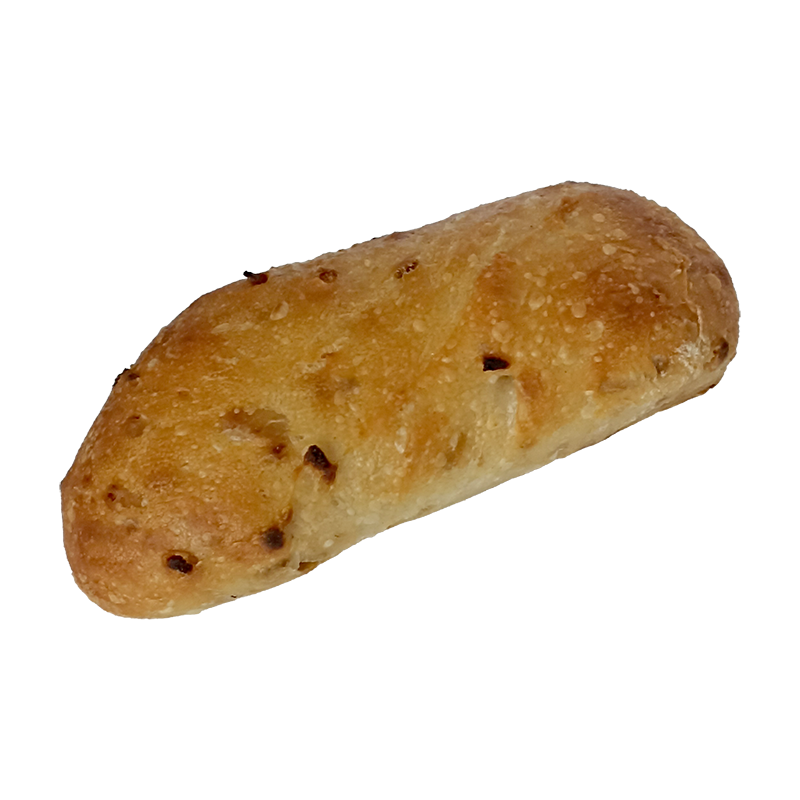 Kovászos zsemle, sült hagymás.
