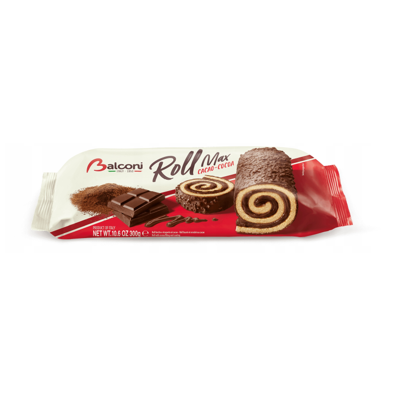 Zsírszegény kakaós bevonómasszával mártott (17%) piskóta tekercs zsírszegény kakaós töltelékkel (22%).