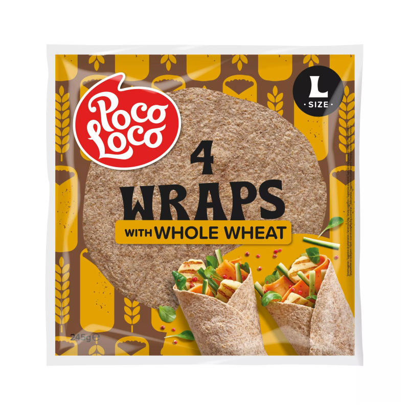 Tortilla teljes kiőrlésű liszttel, védőgázas csomagolásban.