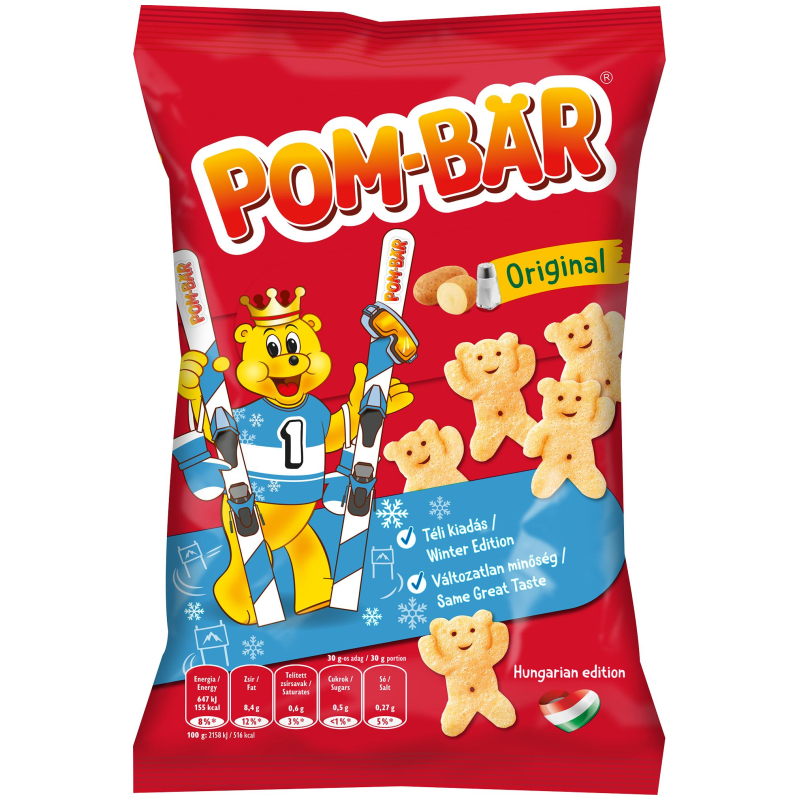 Hány macit tud egy gyerek egy ültő helyében megenni? Akár egy tállal is! Különösen, hogy ezek a macik nem mások, mint ropogós könnyű krumplimacik. Akad, aki még nem tudná, hogy a Pom Bärről van szó? A kis koronás Pom Bär mackó már a zacskóról ránevet a gyerekekre!